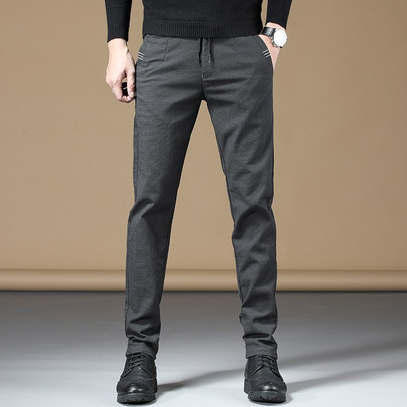 【メンズチノパンツ】ウエストゴム設計、ストレートスタイル、ゆったりで快適